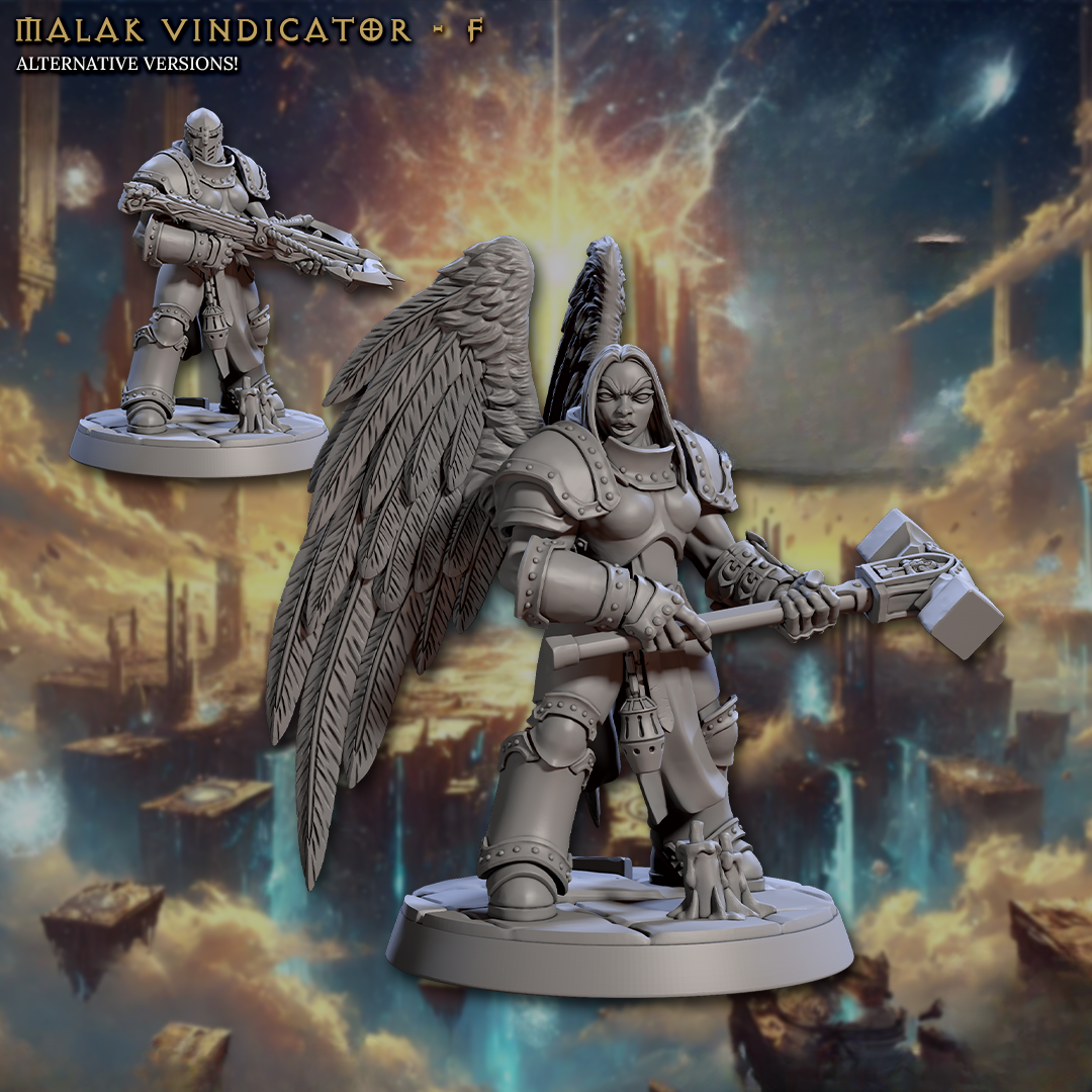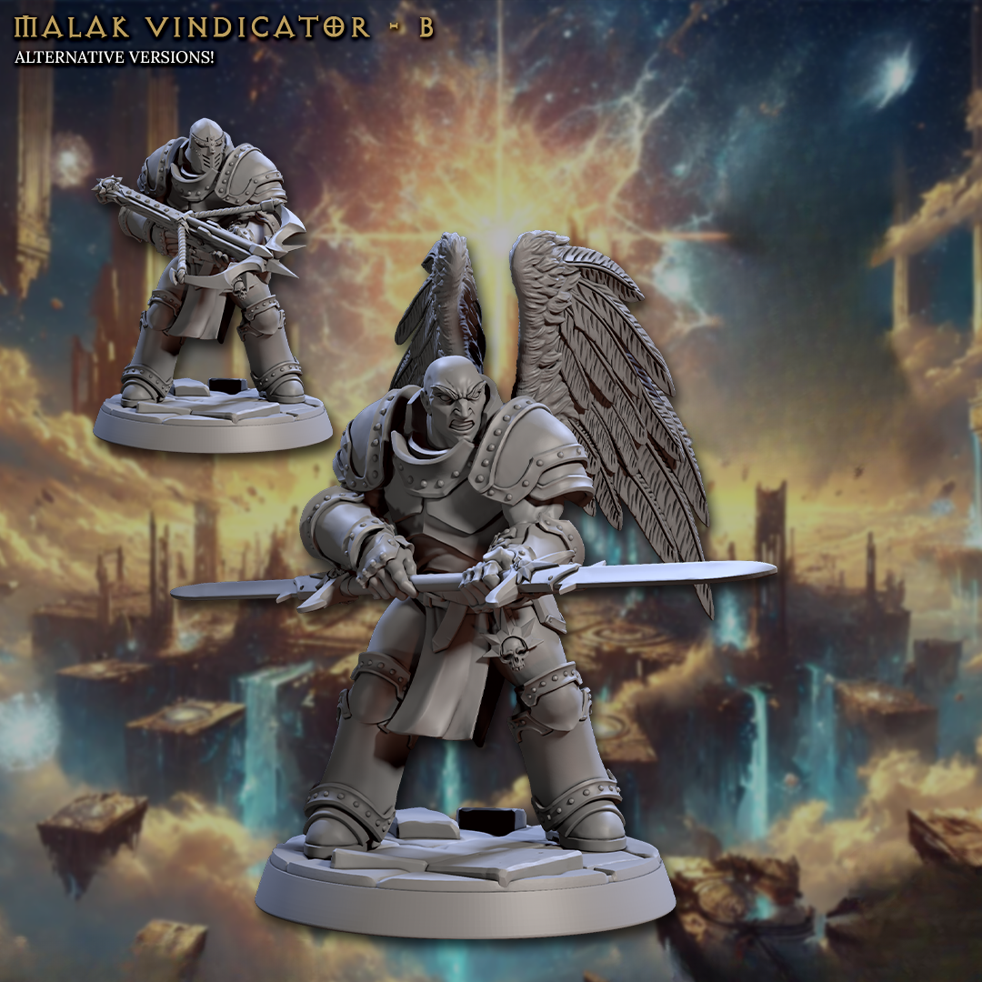 - Las versiones indicadas como "alternativas" comparten foto con las versiones normales, se pueden ver mas pequeñas en un costado. Así también, se puede elegir un Vindicador con alas (que en las fotos esta con la cabeza descubierta) con casco, indicandolo en las notas del pedido.