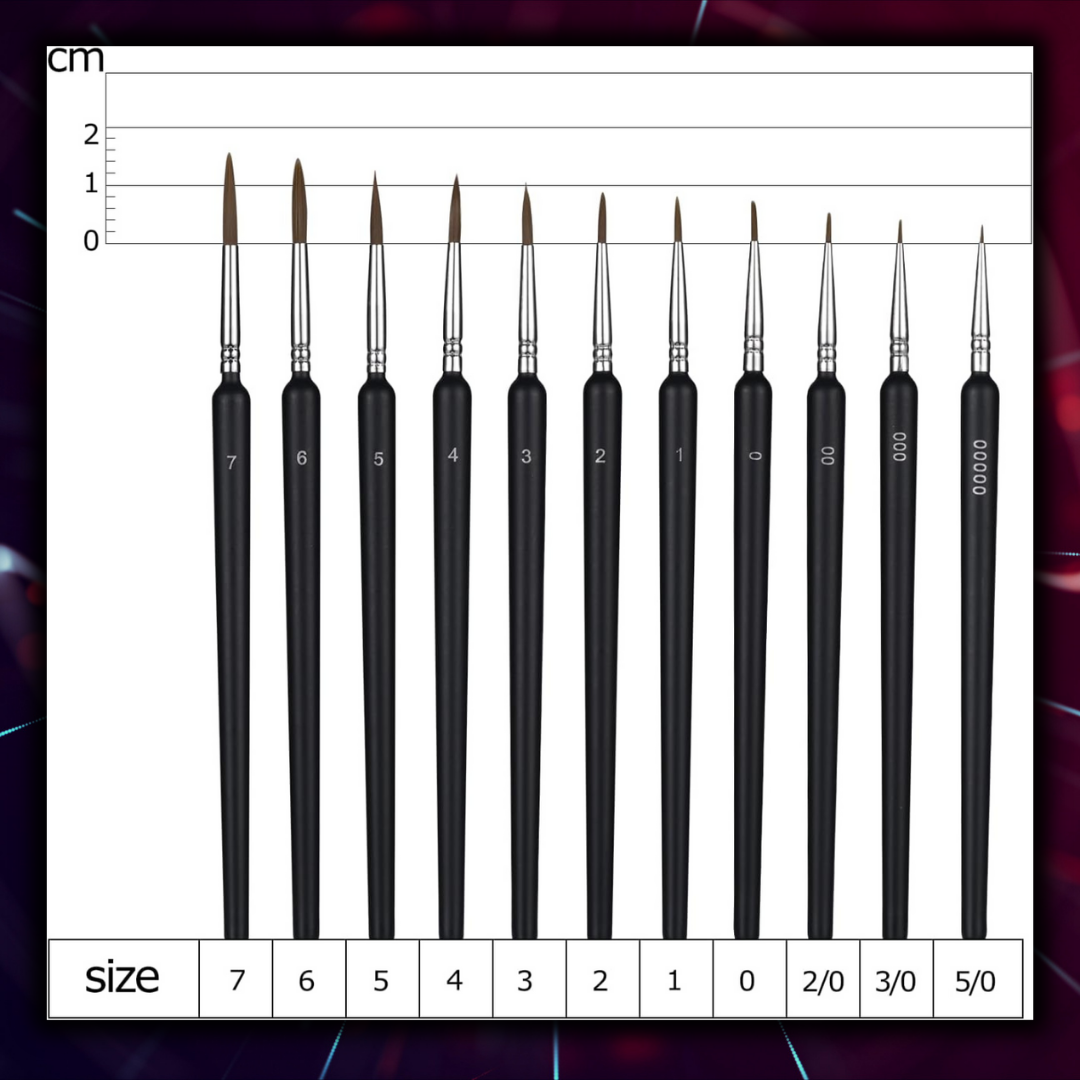 Obtén el máximo control en la pintura de miniaturas con estos pinceles para detalles, diseñados para lograr trazos precisos y realzar cada aspecto de tus figuras. Fabricados con cerdas sintéticas de alta calidad, férulas resistentes y un mango ergonómico de madera, ofrecen la combinación perfecta de precisión y comodidad para pintores de todos los niveles.