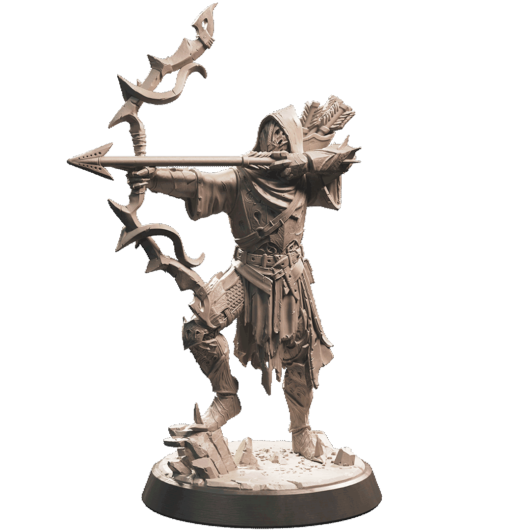 El arquero caído yace en la tierra, su figura en tensión como un arco listo para ser liberado. Su mano firme sostiene la flecha con destreza, su mirada fija en el objetivo distante. A pesar de su posición postrada, su determinación permanece inquebrantable, como si la gravedad misma no pudiera detener su puntería. En su rostro, una expresión de concentración y determinación refleja su voluntad de luchar hasta el último aliento.