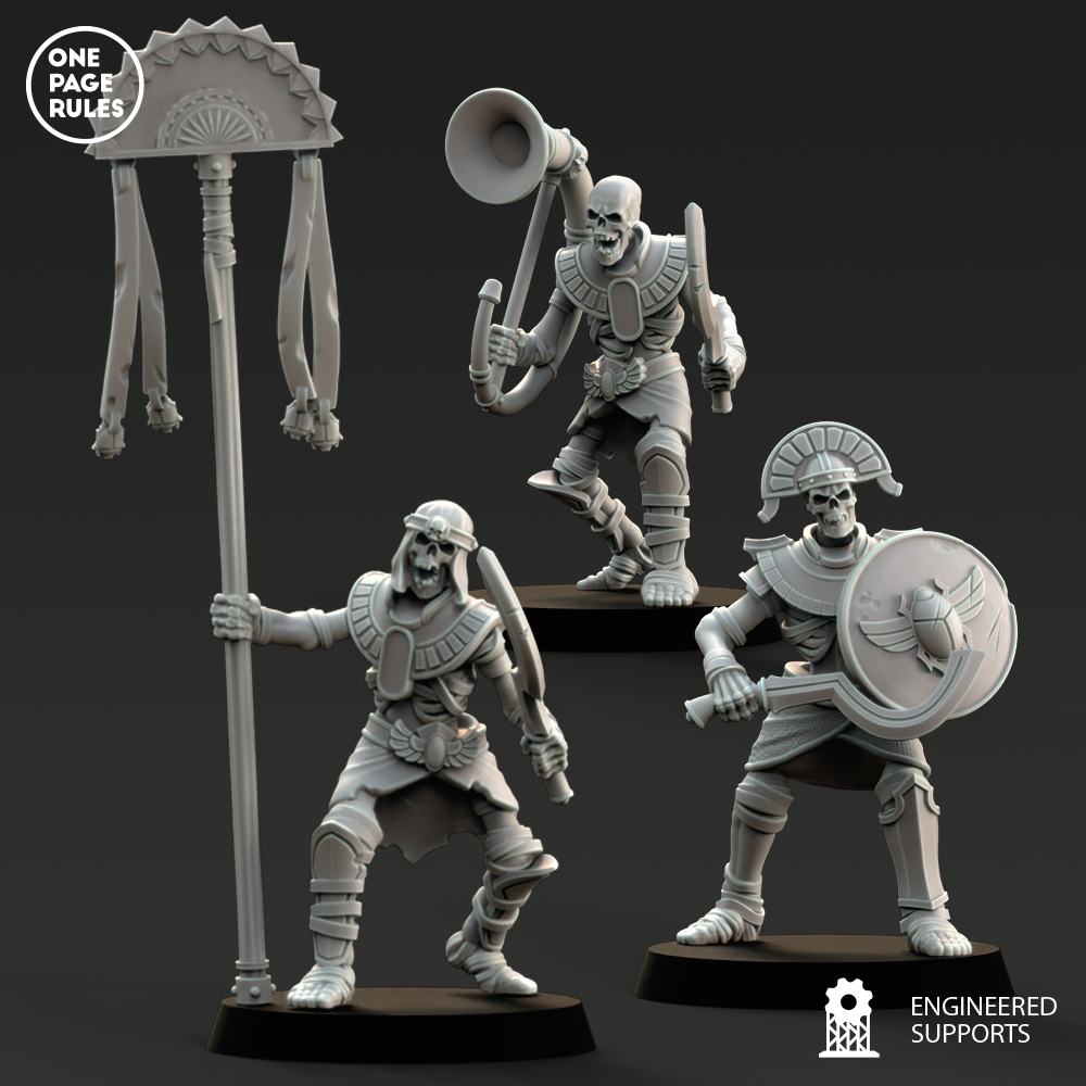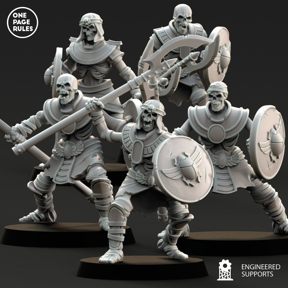Los Esqueletos a Guerrero vienen en 5 variantes con espada, 5 variantes con lanza y 3 variantes de elite.
